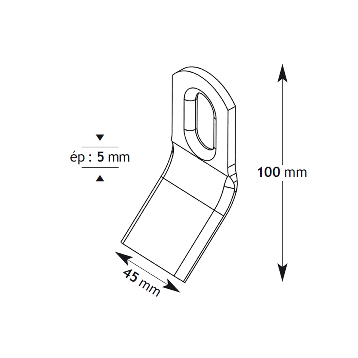 Longueur 100 mm          Largeur 45 mm          Epaisseur 5 mm          Poids théorique 198 g